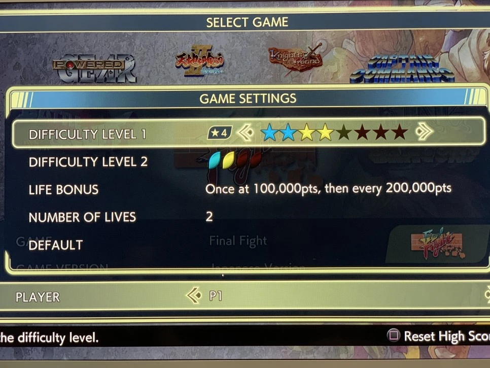 게임 설정은 아주 탁월함. 난이도 조절은 물론 pc의 에뮬레이터들 처럼 라이프 갯수나 언어 설정도 가능.