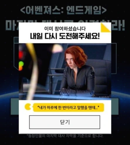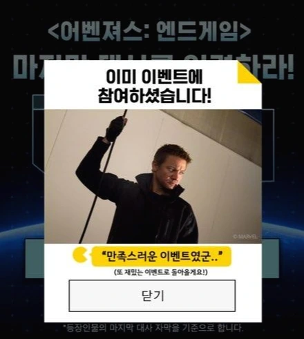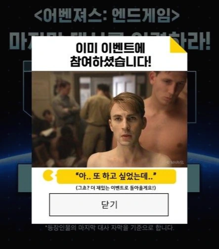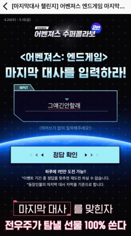 바로 어벤져스 엔드게임의 마지막 대사를 적는 이벤트다.