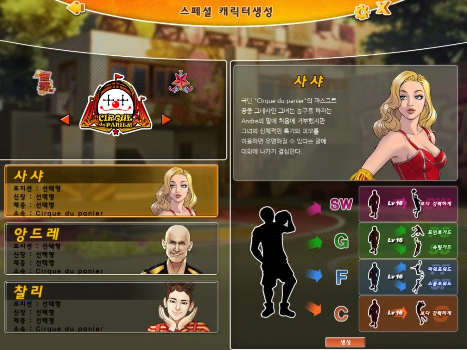 스페셜캐릭터(팀 cirque du panier - 사샤) 센터(lv. 41)