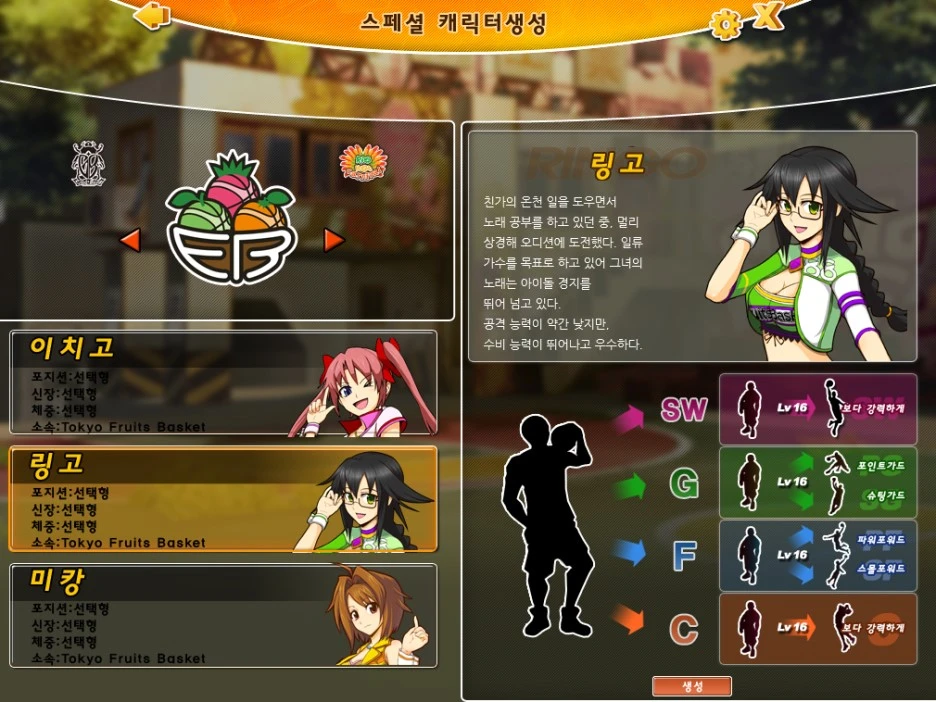 스페셜캐릭터(팀 tokyo fruits basket - 링고) 센터(lv. 15)