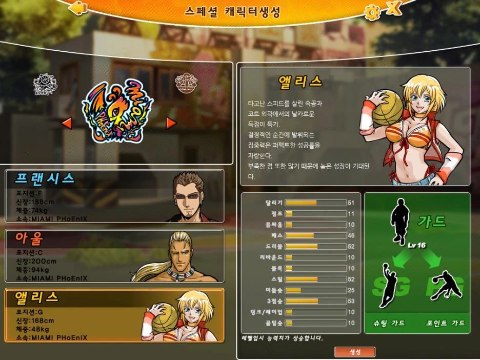 스페셜캐릭터(팀 miami phoenix - 앨리스) 포인트가드(lv. 40)
