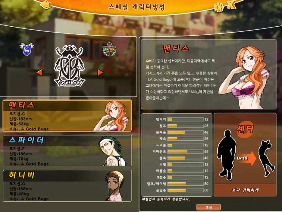 스페셜캐릭터(팀 la gold bugs - 맨티스) 센터(lv. 29)