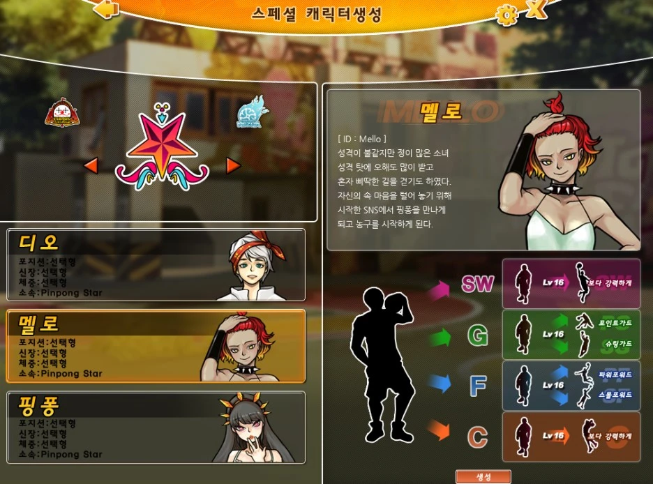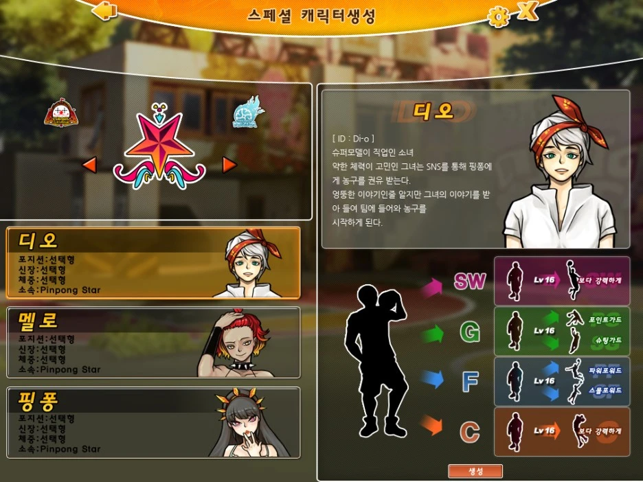 스페셜캐릭터(팀 pinpong - 디오) 파워포워드(lv. 45)