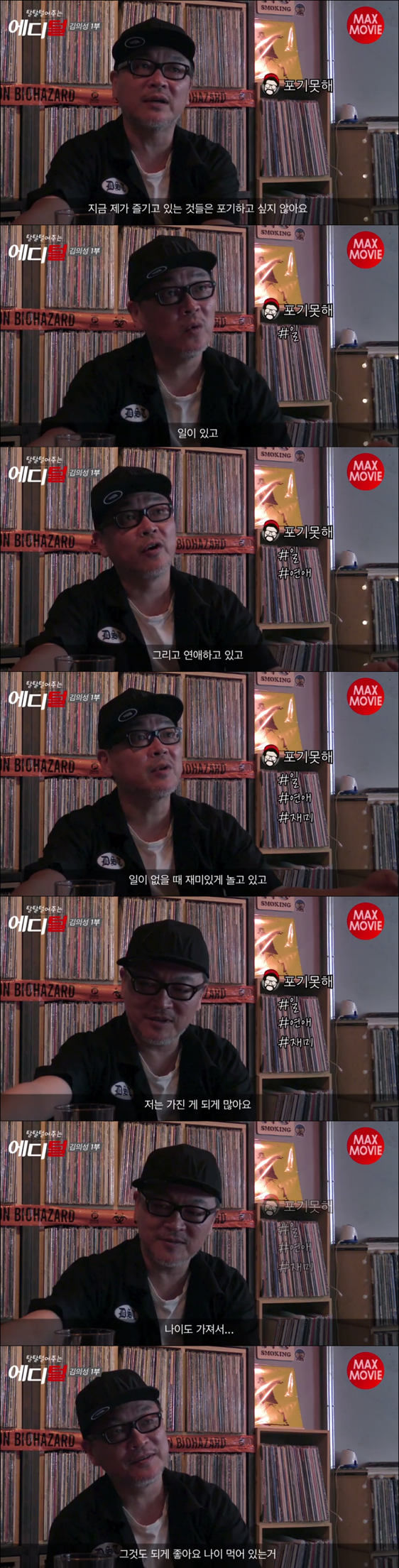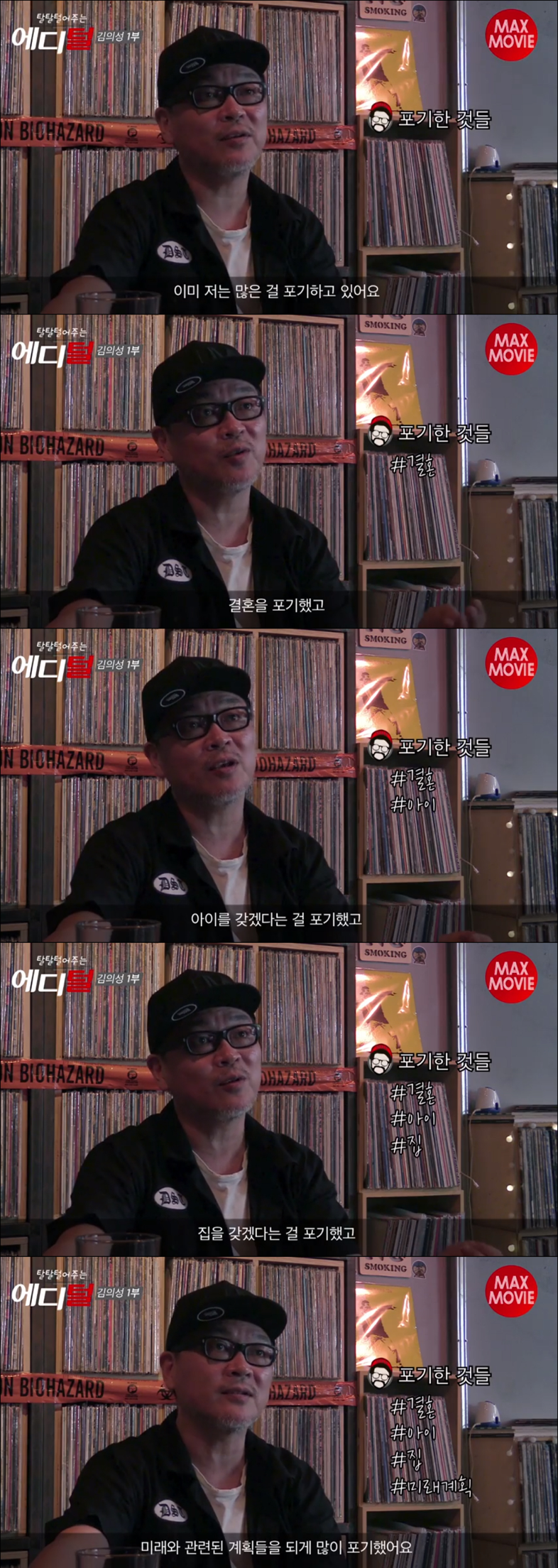 문득 김의성 아저씨가 당연히(!) 애 아빠인줄 알았는데 알고보니 노총각에 아내도 아이도 포기한 사람이라는 걸 알게된 어느 날 밤.