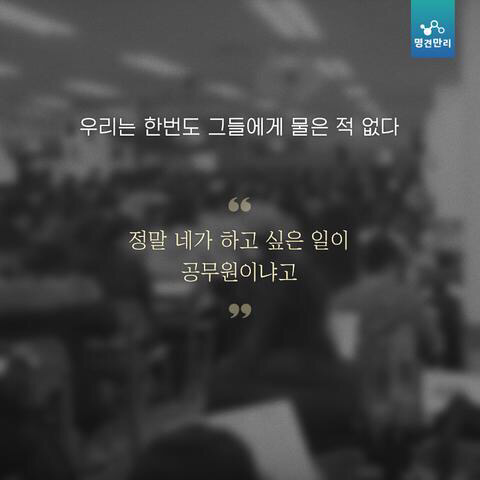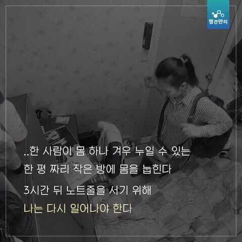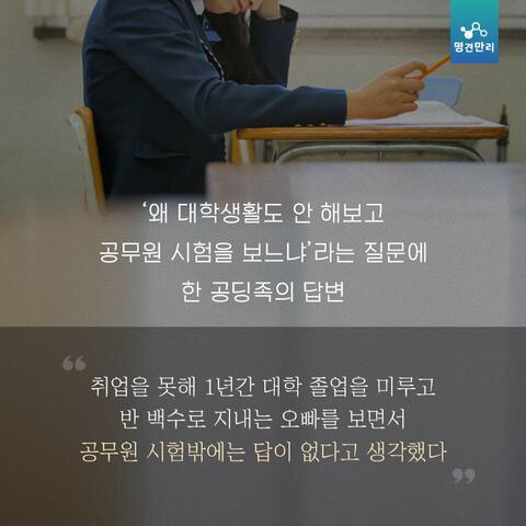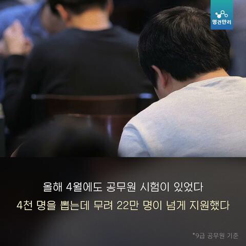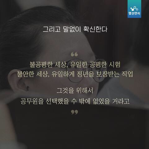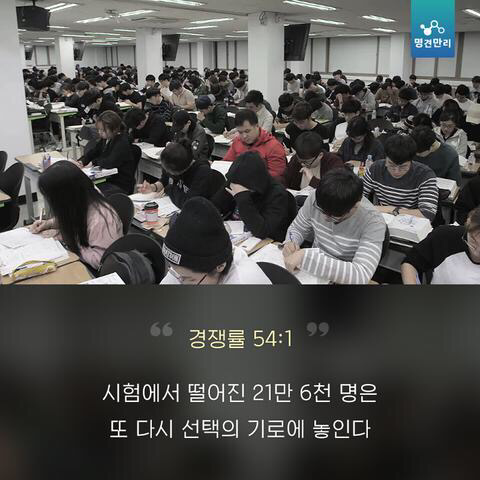 그런 삶을 살지 않기 위해 오늘도 청춘들은 젊음을 담보로 목숨을 걸고 고시원에서 공무원 시험 준비를 한다.
