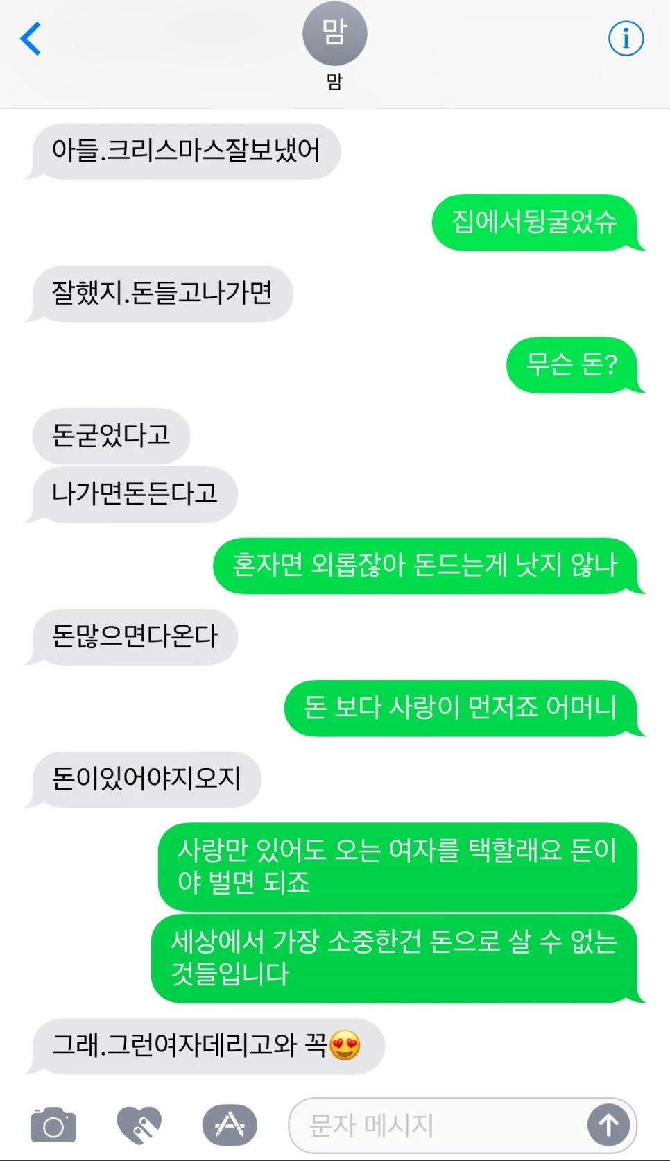 문득 엄니가 오늘 아침에 문자를 보내시길래