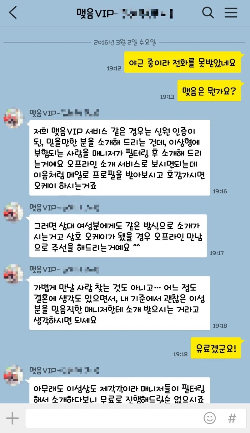 어제 맺음 vip 매니저라는 사람에게 연락이 왔다.