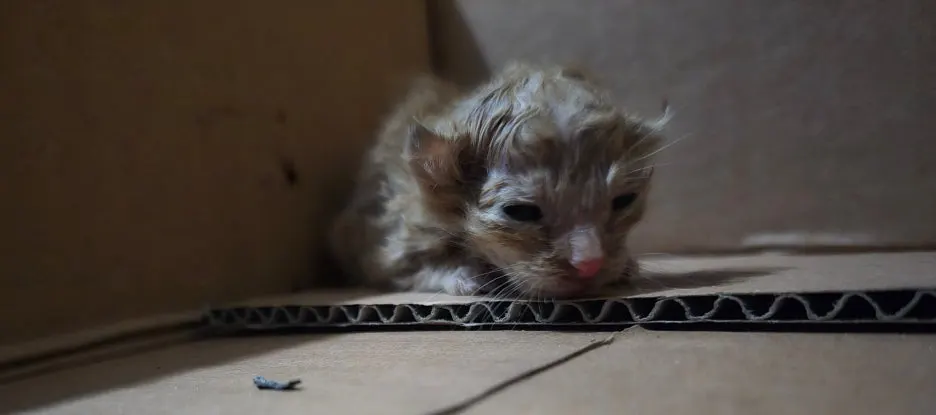 얼마 전 퇴근 후 아파트 주차장에 들어섰을 때였습니다. 차에서 내리자 어디선가 아주 가느다란 고양이 울음소리가 들려왔습니다. 소리의 근원지를 찾아 주위를 둘러보니, 작은 종이 박스 안에 새끼 고양이가 담겨 있었습니다. 털은 흠뻑 젖어 있었고, 제 손바닥에 올려놓을 수 있을 만큼 아주 작았습니다. 젖어 있는 모양을 보아하니 물에 젖은 것이 아니라, 갓 태어나 양수에 젖어 더디게 마르는 듯했습니다.