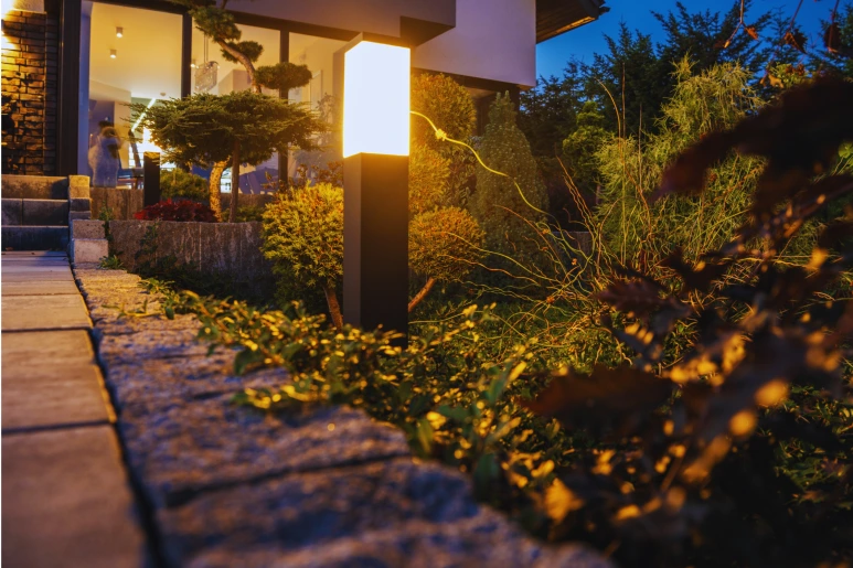 정원의 잔디를 비추는 가로등은 유난히 따뜻한 오렌지색으로 빛나고 있었습니다.