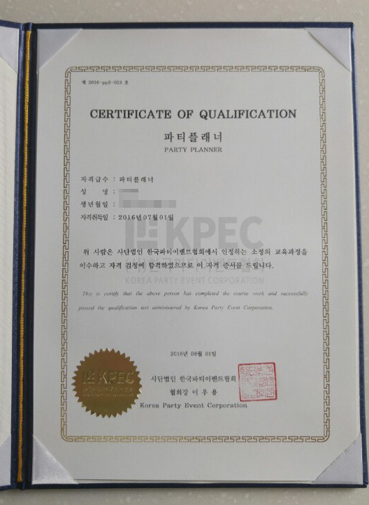 국내 유일, 최초의 사단법인 파티이벤트협회에서 발급하는 파티플래너자격증으로 파티플래너로 실제 활동하기 위한 무기입니다. 취업과 창업, 프리랜서 활동을 위해 협회 파티플래너학원의 자격증은 업계에 공신력을 인정받게 됩니다.