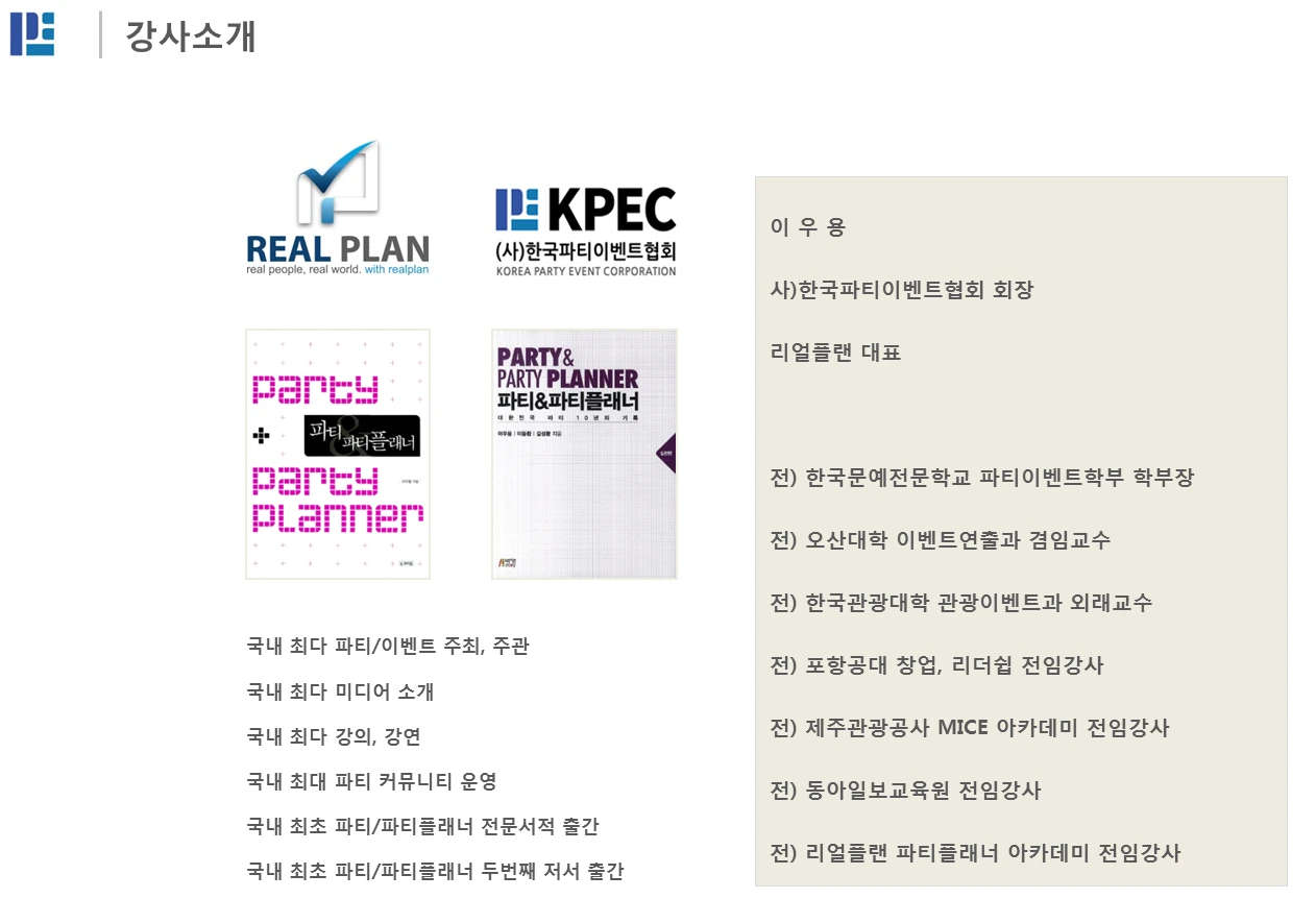또한 국내 최초, 유일 사단법인 파티이벤트협회인 사)한국파티이벤트협회 소개도 이루어졌습니다.