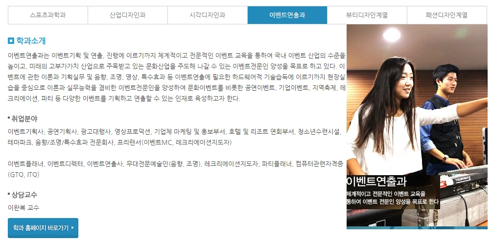 대표적인 대학교로는 오산대학교 이벤트연출과 등이 있다.