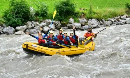 비가 오는 인터라켄을 가장 잘 즐길 수 있는 방법, 래프팅 알프스 산맥을 둘러싸고 있는 이 강은 비가 오게 되면 굉장한 급류를 타게 된다. 그 위에서 래프팅을 한다면?