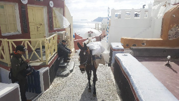 길가를 걷다가 귀여운 고양이를 발견해서 사진으로 남겼는데, 걸으면 걸을수록 골목골목에서 한두 마리씩 고양이가 자주 보였다. 노새에 짐을 싣고 운반하는 모습도 종종 보였는데. 이 정도면 브레멘 음악대 말고 산토리니 음악대도 맘먹으면 한번 조성해볼 수 있을 것 같았다 (ㅋㅋㅋ)