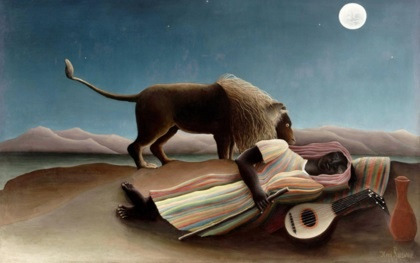 사막에 달이 떠올랐다. 푸르지만 그윽한 달빛이 하늘을 가득 채웠다. 광활히 펼쳐진 모래언덕이 끝 간 데 없이 이어진다, 검은색 피부를 가진 집시 여인은 깊은 잠에 빠졌다. 우연히 그녀 곁을 지나던 맹수가 그녀에게 다가가 채취를 맡는다. 사자는 그녀를 가만히 바라볼 뿐이다. 그의 채취를 기억이라도 하겠다는 듯. 달빛 때문일까? 그녀는 시처럼 잔다. 달이 웃고 있다. 달처럼 그녀도 웃는다.