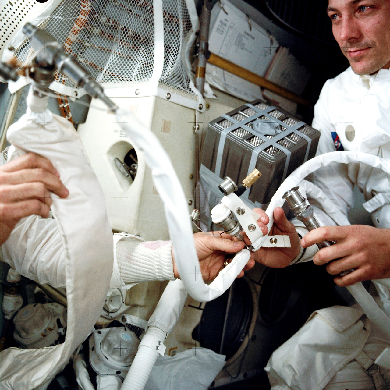 달착륙선의 이산화탄소 농도 문제를 해결한 과정 역시 우주비행사와 관제센터의 팀워크를 잘 보여준다. 우주비행사들이 피신한 달착륙선은 정원이 두 명이라 이산화탄소 제거기의 용량이 모자랐다. 어쩔 수 없이 사령선의 것을 떼어다 달착륙선에 이식하려고 했지만 사령선과 달착륙선의 이산화탄소 제거기 규격이 달라서 호환되지 않았다. 관제센터에서는 엔지니어들이 모여 우주선 안에 있는 재료만으로 이산화탄소 제거기를 연결하는 방법을 찾아냈고, 우주비행사들은 이를 충실히 활용해서 질식 위험에서 벗어날 수 있었다.