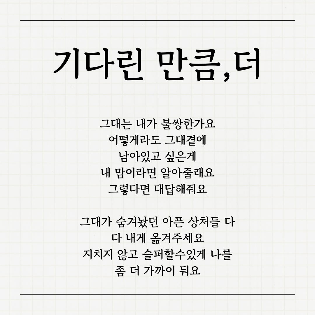 네 곁을 지킬 수 만 있게 해달라는 애달픈 마음이 사랑이다.