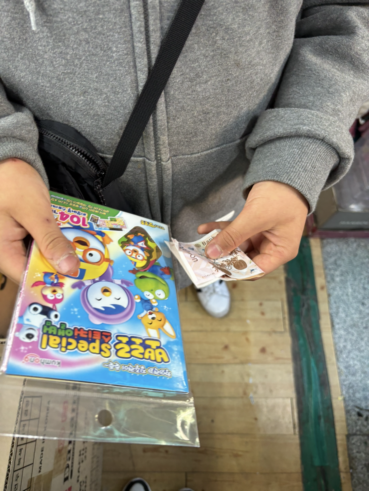 스티커북을 사고 주인분께 5천 원을 냈다. 카드가 아닌 현금 내는 건 도움이 필요하지만, 거스름돈 받는 걸 기다린 게 기특했다.