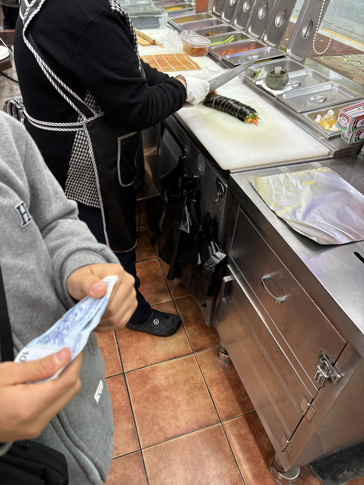 김밥이 만들어지는 동안 쥐어준 4천 원을 고스란히 잡고 있었다.