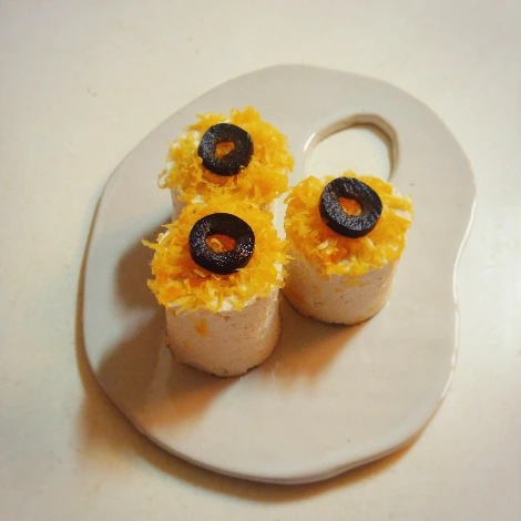 동그란 무스 틀로 두부를 찍어서 두부 모양을 낸다.