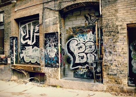 그래피티로 가득한 토론토 뒷골목에 들어서면