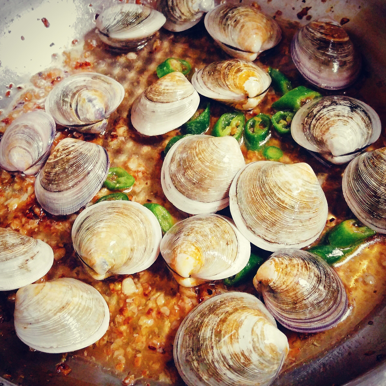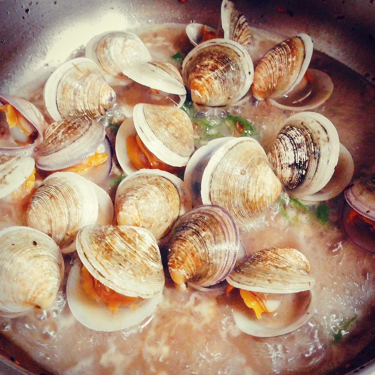 • 조개를 볶을 때 비린내 제거를 위해 맛술을 넣었는데 화이트 와인이나 청주 등을 넣어도 된다.