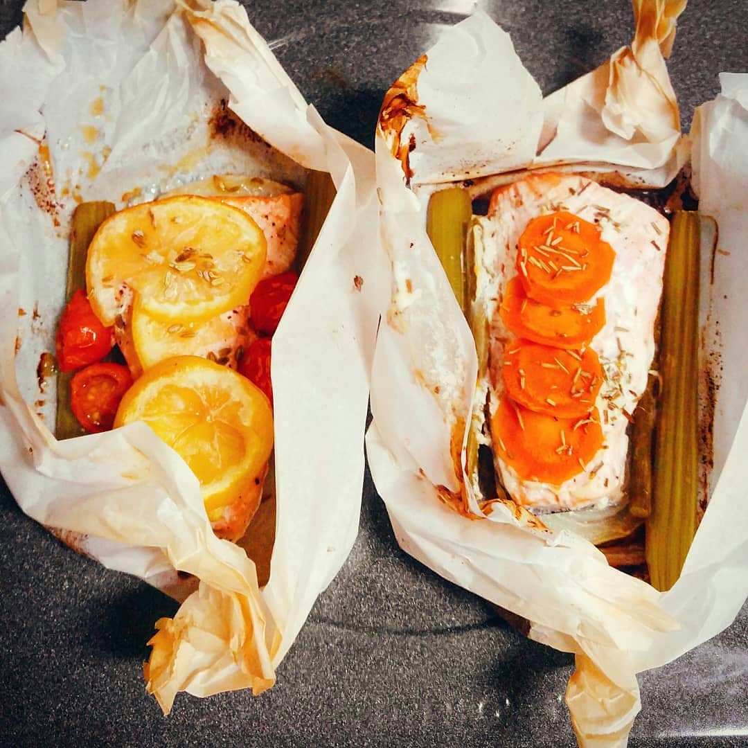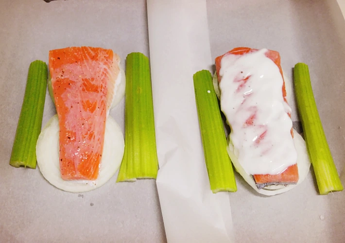 두 가지 버전의 연어 빠삐요뜨를