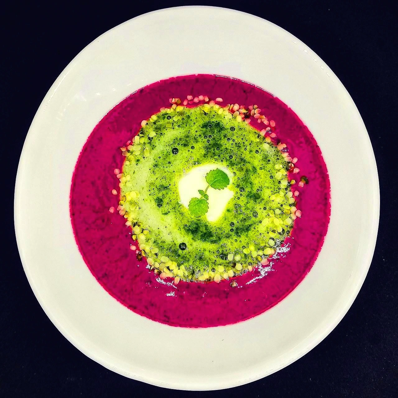 ② 접시에 간 아로니아를 담고 간 알로에를 얹는다.