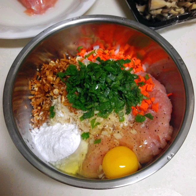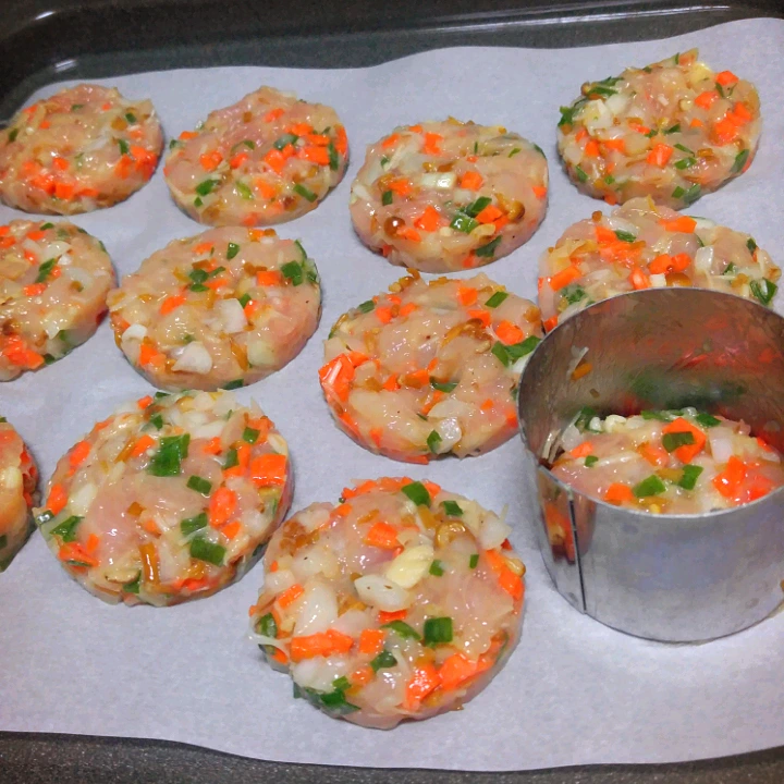 •동그랑땡에 돼지고기 대신 닭가슴살을 넣은 것이므로 야채는 취향껏 넣으면 되겠다.