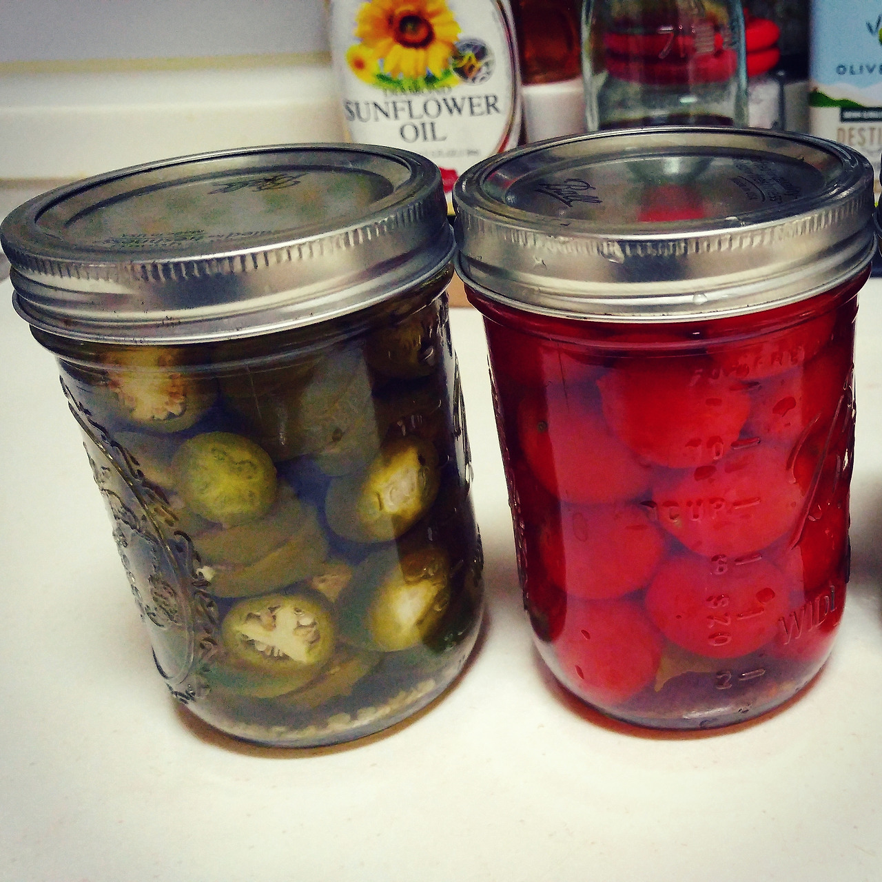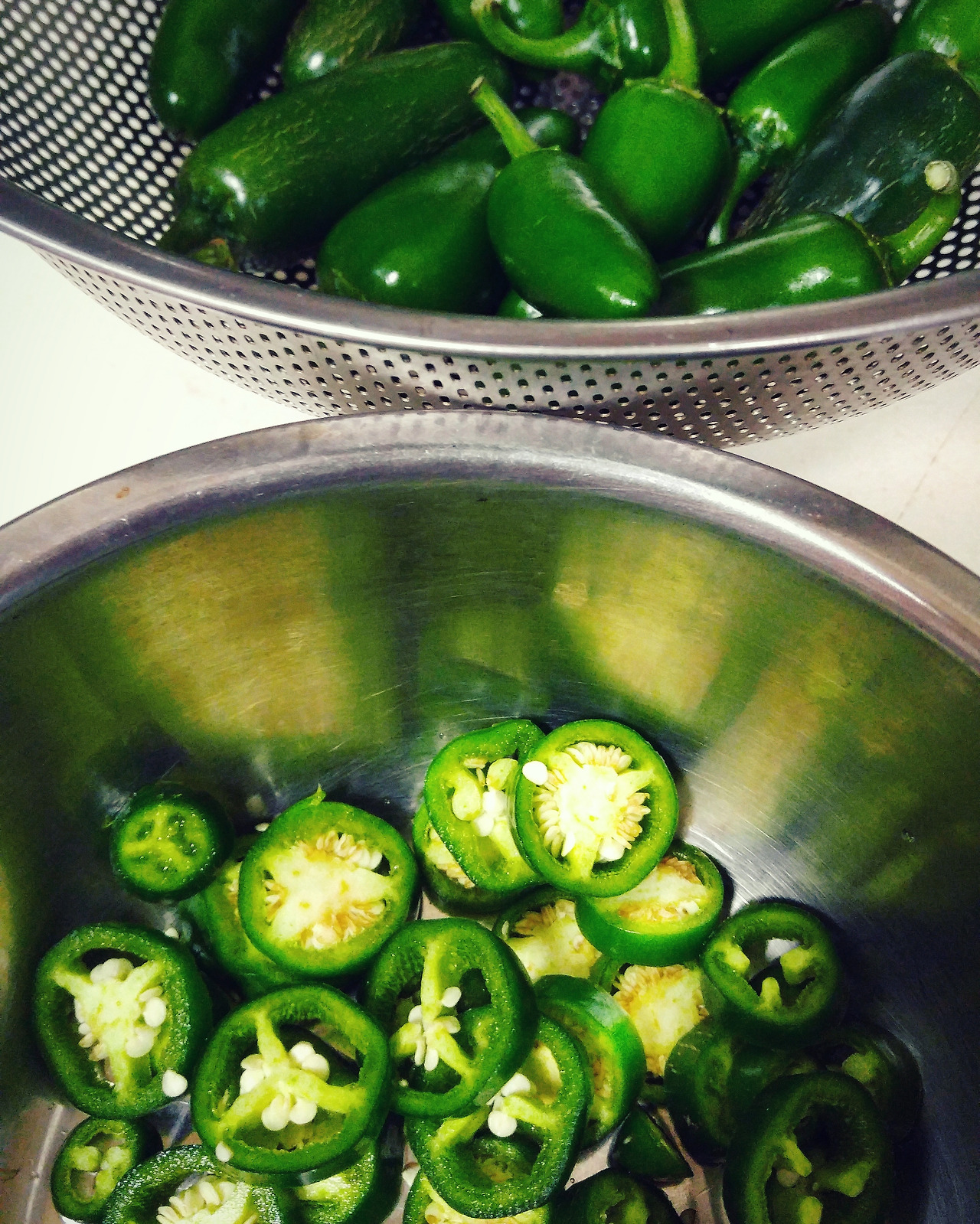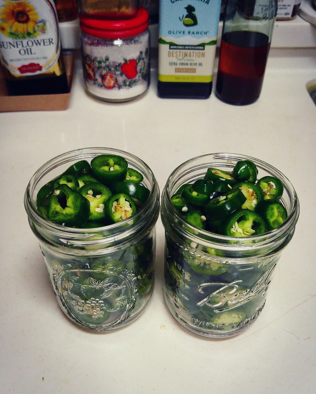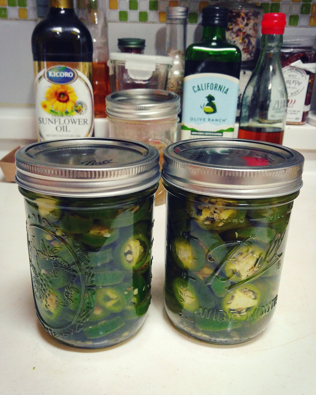 •방금 딴 할라피뇨 고추가 참 싱싱했다. 그래서 끓는 피클 물을 그대로 사용했다.