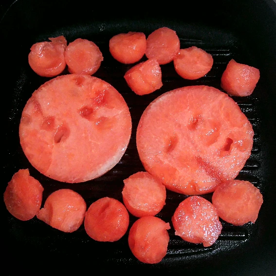 • 씨앗을 꼭 제거하고 만들어야 한단다. 씨앗이 있으면 끔찍한 일이 벌어질 거라는데 굳이 체험하고 싶지 않아서 꼼꼼히 제거했다. 이 문제 때문에 씨 없는 수박이 권장되기도 했다.