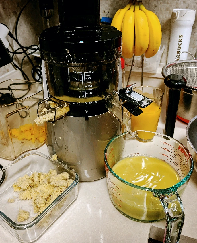 첫째는 손질해서 자른 생강을 물에 담가 매운맛과 전분을 함께 제거한 후에 착즙을 하는 것이다. 최소 3시간 이상 물에 담근다.