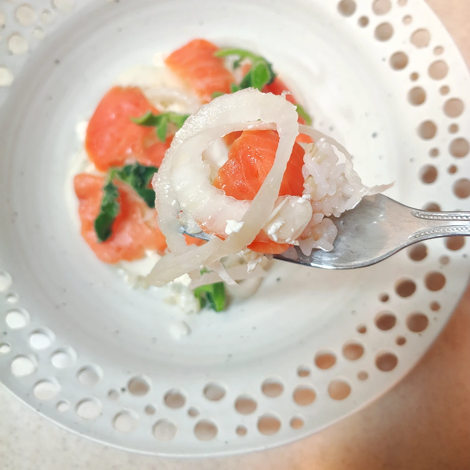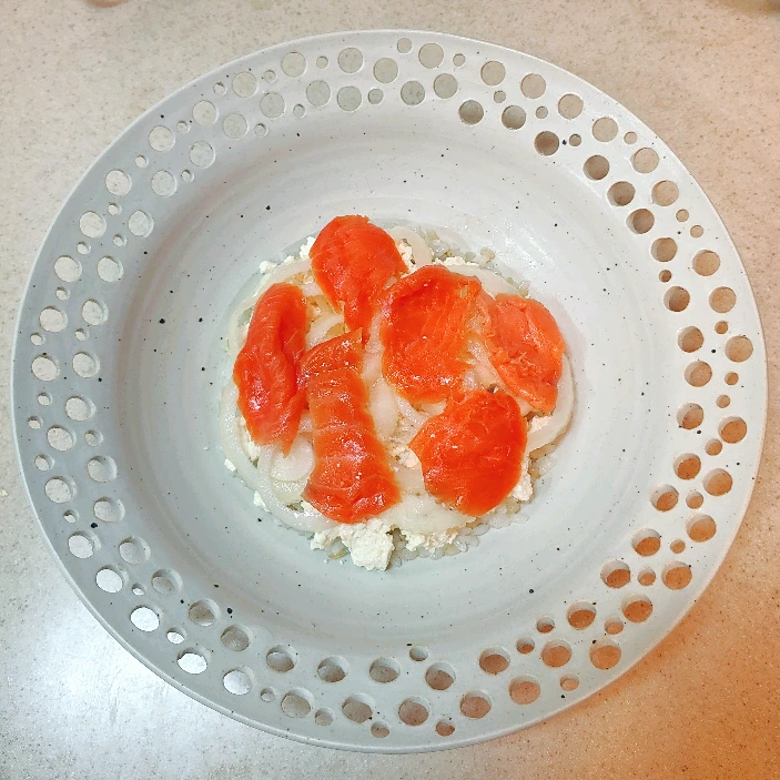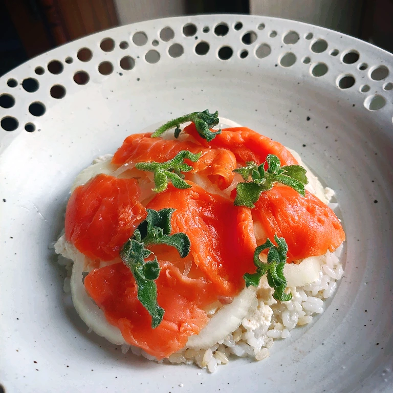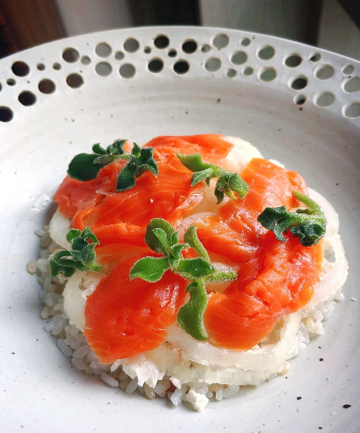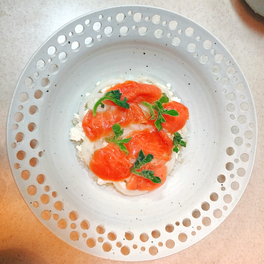 • 두부 때문에 배합초 간을 조금 세게 해야 맛이 더 좋다. • 두부 대신 계란지단을 올리면 색깔이 더 예쁠 것 같다.• 아이스 플랜트를 꼭 올릴 필요는 없다. 냉장고에 있는 야채 아무거나 넣어도 된다. • 훈제연어와 양파는 환상 궁합. 양파를 찬물에 담가 꼭 매운맛을 제거하자.