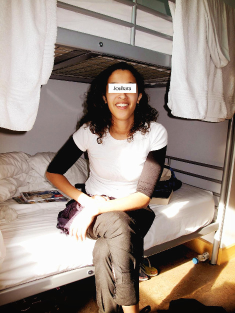 Jouhara는 내 자리 옆 칸의 1층 침대를 사용했다.