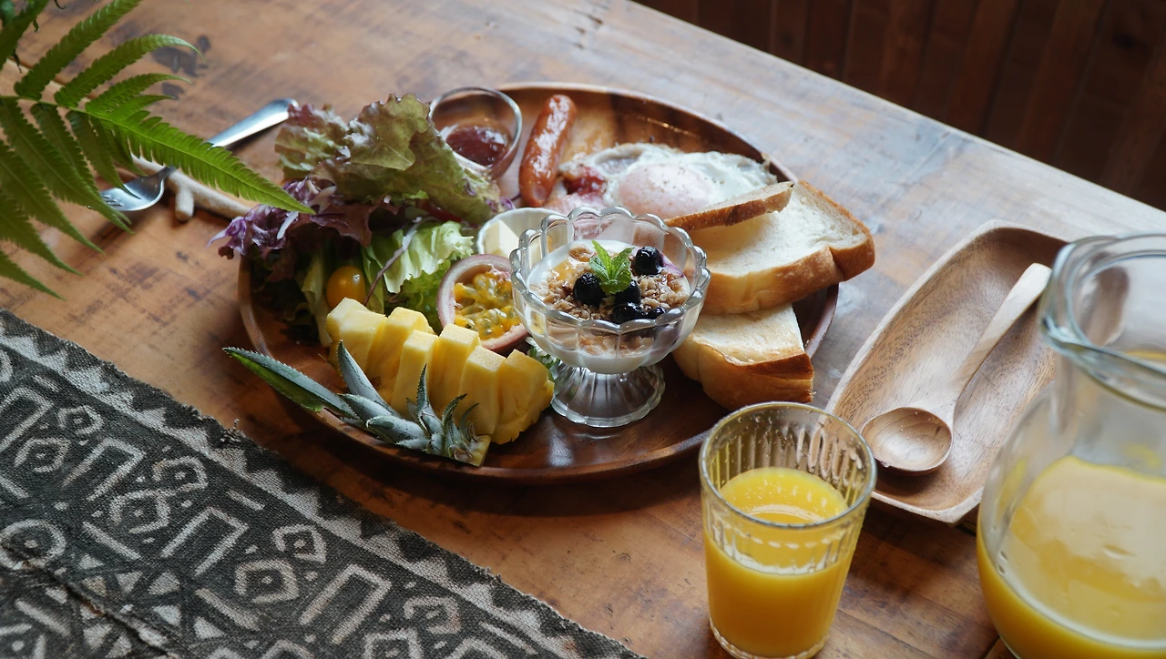 지저귐과 바람 소리를 들으며 커피를 마시고 있자니 8시에 예약해둔 조식이 방으로 배달됐다.