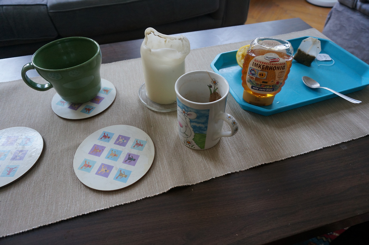 두 번째 조각은 마지막 아침. 와인을 마시고 나의 작은 매트리스에서 꿀 같은 단잠을 자고 일어난 나에게 친구는 마지막이니 아침을 해주겠다고 했다. 어제 먹고 남은 것을 먹어도 좋다는 나에게 '유러피안은 아침을 그렇게 먹지 않아. 그건 너무 무겁잖아'라고 단호하게 말한 친구는 아주 무거 워보이는 컵을 가져왔다. 그리고 뜨거운 물을 가득 붓고는 티를 골라보라고 했다. 태어나서 마실 차를 골라본 건 그때가 처음이었다. 커다란 컵에 담긴 차를 보며 뼈해장국보다 이게 더 무거울 수 있겠다는 생각을 하던 찰나, 친구가 내 컵에 꿀을 듬뿍 짜 넣어주었다. 확실히 이 차가 더 무거울 것 같다는 생각을 하며, 아주 뜨겁고 아주 커다랗고 아주 단 차를 아주 천천히 마셨다.