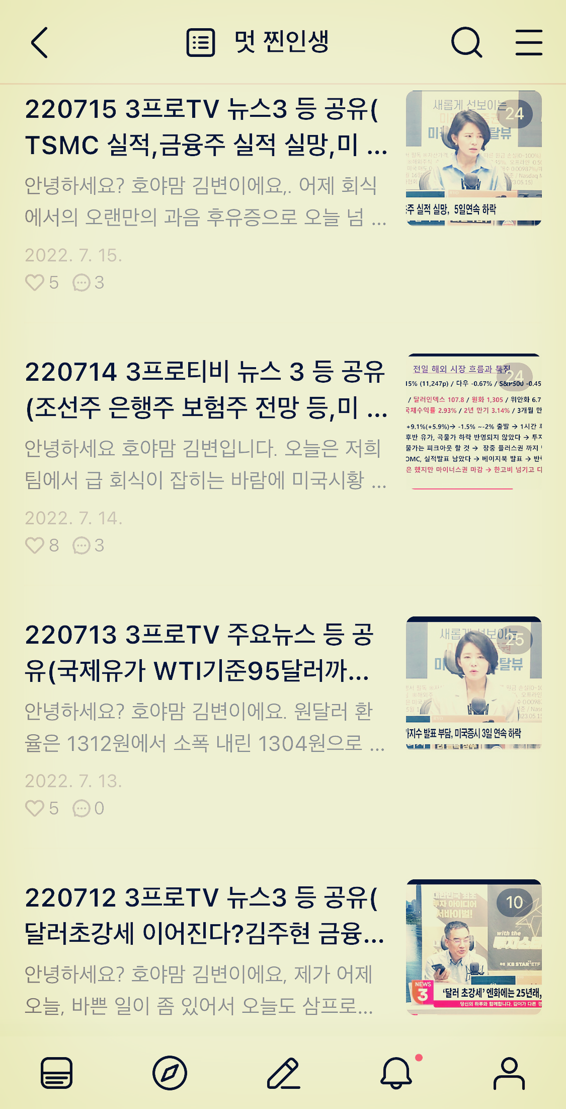 <주중에 매일 블로그에 삼프로티비 주요 내용을 올리고 있다>