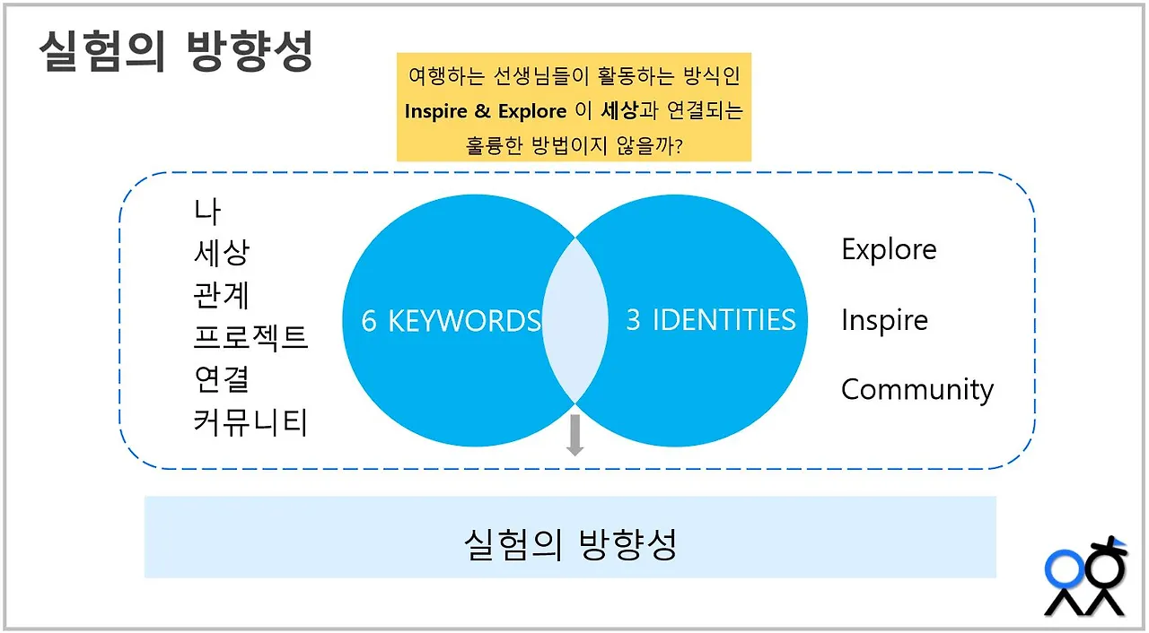 나의 대학생활은 시간 보내기의 아쉬움이었다면, 여행하는 선생님들(대학생)의 시간은 마음속 도전을 맘껏 경험하며 차곡차곡 쌓아가는, 적극적으로 자신과 세상을 알아가는 시간이길 희망한다. 우리학교 아이만의 성장이 아닌 대학생도 자신을 알고, 세상을 알고, 관계를 만들어가며 성장하는 함께하는 모두의 프로젝트이길 희망한다.