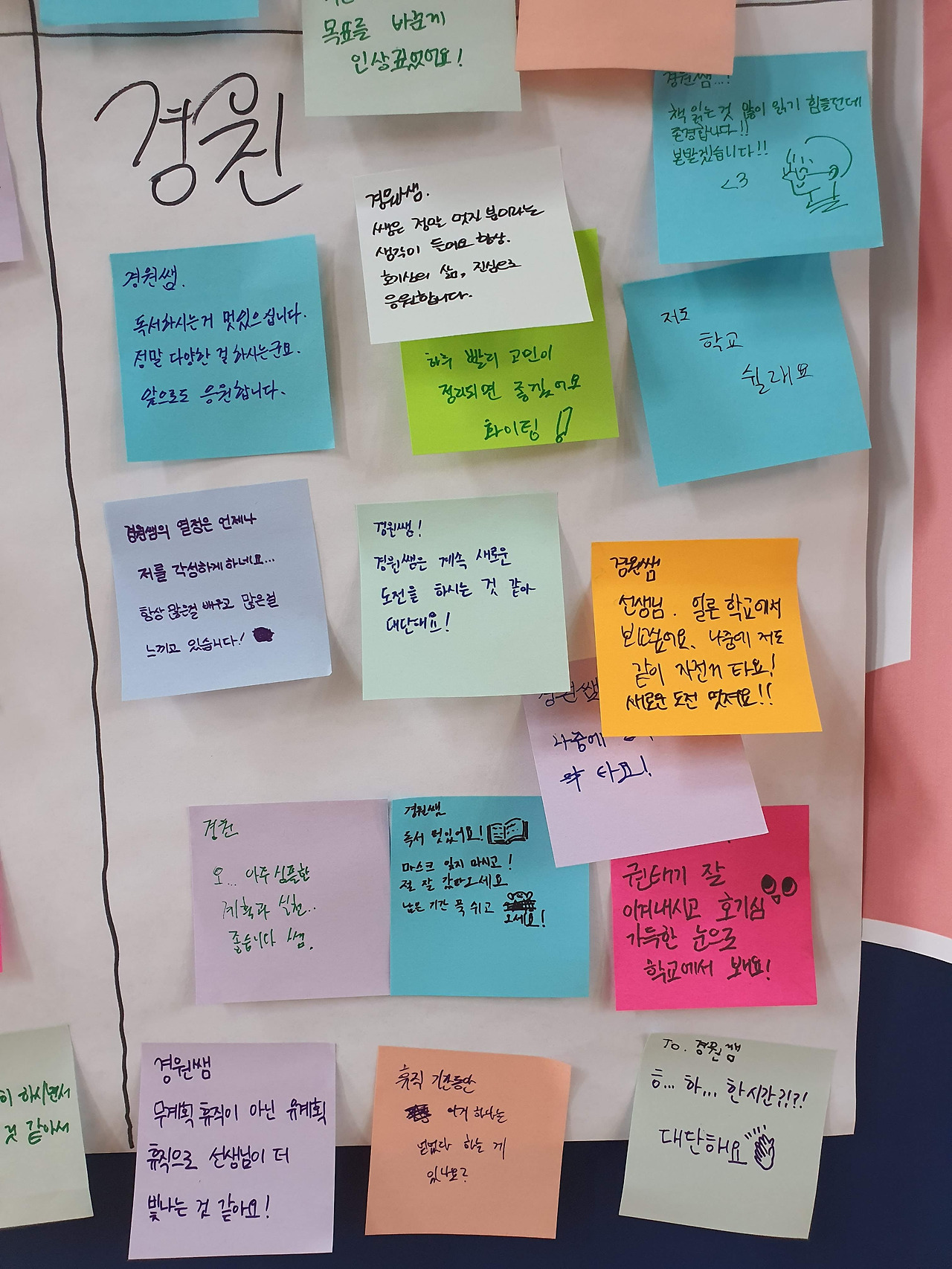 주변인(관망)에서 소감발표자(인솔자)로, 그리고 대화참여자로 함께 안아주는 아이들. 나의 위치도 변화. 이제는 아이들과 수평적인 만남으로 함께 성장하는 사람이 되었다.