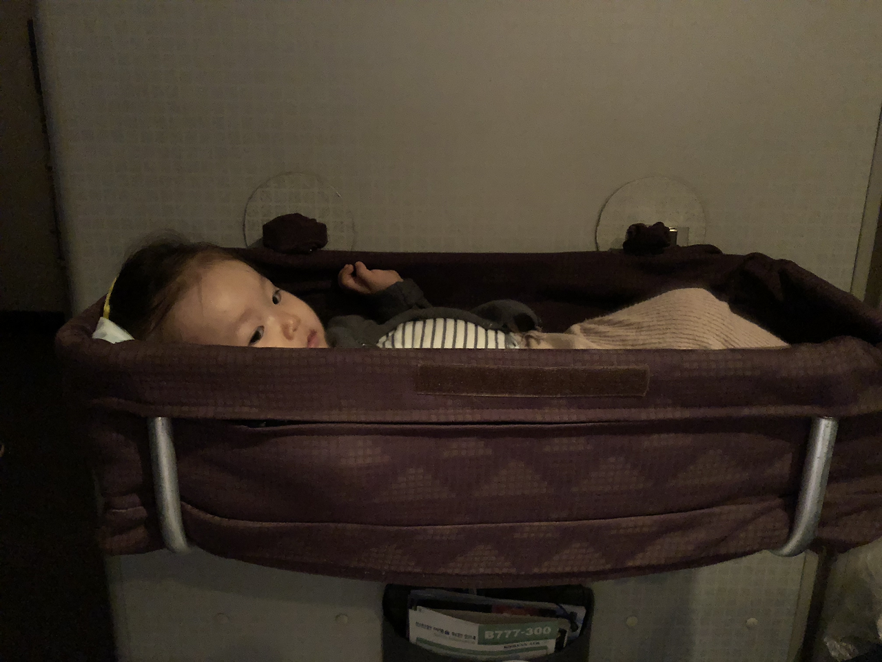 아이가 들어가기엔 베시넷이 작아서 아쉬웠지만 짐을 좀 담을 후 있어서 다행 (베시넷 전용좌석은 다리 뻗긴 좋으나 난 수납공간 및 모니터가 불편해서 개인적으로 싫음)