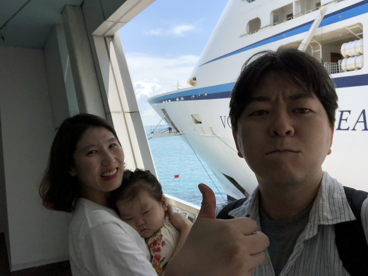그리고 일단 아이가 크루즈에 잘 적응하는지 보기 위한 테스트! 그리고 그 아이를 엄마가 감당할 수 있는지. 그리고 그 상황에서 나는 살아갈 수 있는지 확인을 하기 위해-