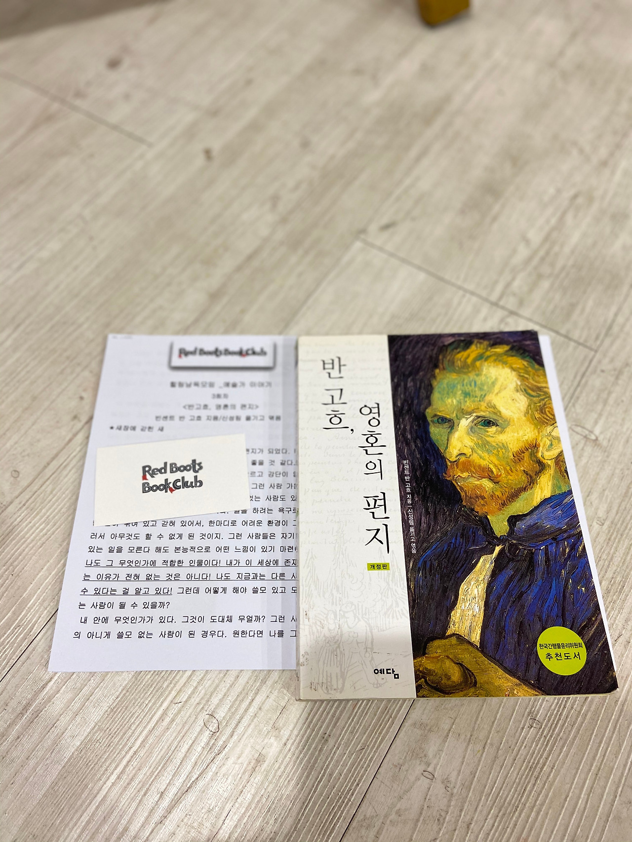 아이들을 먹이고, 학교와 유치원에 데려 다 주고, 오늘 가야할 곳으로 향한다. 어제는 몸이 아플 정도로 무리해서 모임자료를 만들었다. 그리고 병이 난 상태로 진통제를 삼키고, 자료를 챙겨서 모임 장소에 도착했다. 들어가기 전에 한번 더 자료를 살펴본다. 빠진 것은 없는지 다시 한번 살핀다. 모임 장소에 도착해서는, 열 체크를 하고, 강사 출석부에 서명을 한다. 그리고 운영자님과 반갑게 인사를 한다. 도착하는 수강생들과 인사를 나누고 자료에 대해 설명도 해드린다. 오늘 함께 한 모임은 고흐에 관한 두 권의 책에서 텍스트를 발췌하고, 작품을 감상하는 낭독모임이다. 함께 읽으면서 책을 읽는 경험을 느껴보는 것이다. 미리 읽어오지 않아도 되니 부담 없이 올 수 있다. 그 만큼 모임을 준비하는 강사인 나는 부담스러울 정도로 준비를 한다.