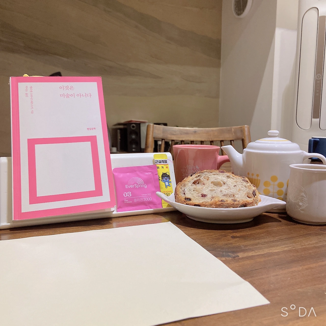 책읽는 자리를 잘 꾸미고, 좋은 차와 영양제를 챙겨먹는 바른생활 자세.