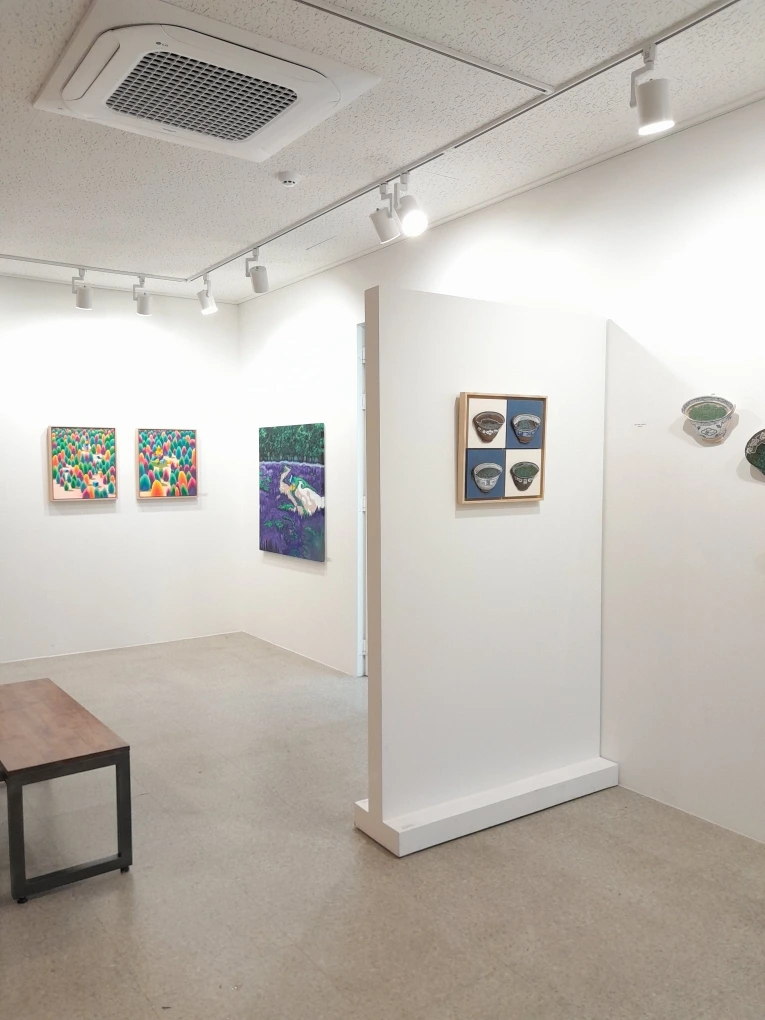 이렇게 저와 인연을 맺은 작품들은 이 전시 공간에서 살아가고 있습니다. 사람들과 끊임없이 만나고, 전시 위치가 자주 바뀌면서 다른 작품들과도 계속 대화합니다. 색과 형태가 주는 영향은 가만히 지켜보면 눈에 띄거든요. 작품들은 서로를 돋보이게 하기 마련입니다. 색, 보색이 주는 특징과도 연결되어 있습니다.