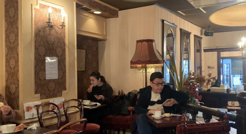 중년의 신사들이 느지막히 여유로운 아침식사를 즐기러 신문과 책을 읽으러 오는 듯한 분위기의 카페.