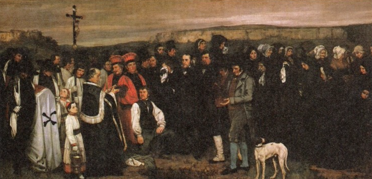 그렇다. 오른쪽이 사실주의 그림이다. 무엇을 그렸냐 하면, 그냥 동네 지나가던 길에 모르는 사람의 장례식을 그린 것이다.