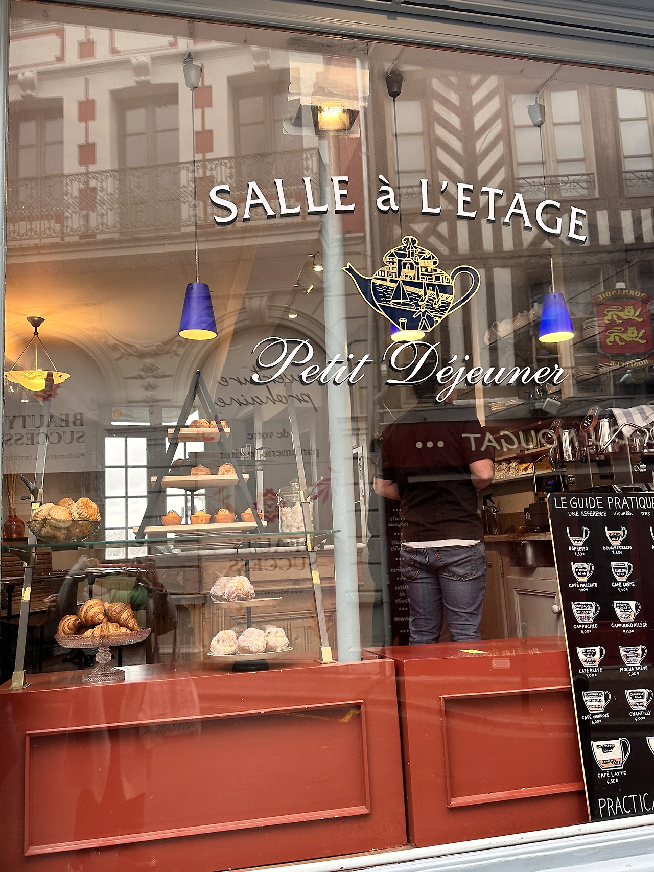 치즈로 유명한 노르망디 옹플뢰르에서 1시간 반의 자유시간이 주어졌다. 이미 아침 일찍부터 에트르타의 해안 절벽을 거닐며 소금바람에 푹 절여진 탓에 더 이상 바닷바람을 맞으며 돌아다니고 싶지 않았다. 점심으로는 단체로 제공되는 바게트 샌드위치가 있었지만, 추위에 얼어붙은 몸을 버스 히터 말고 포근한 카페 온기로 녹이고 싶은 마음에 재빨리 동네를 한 바퀴 돌고는 눈에 띈 작은 카페에 들어갔다.