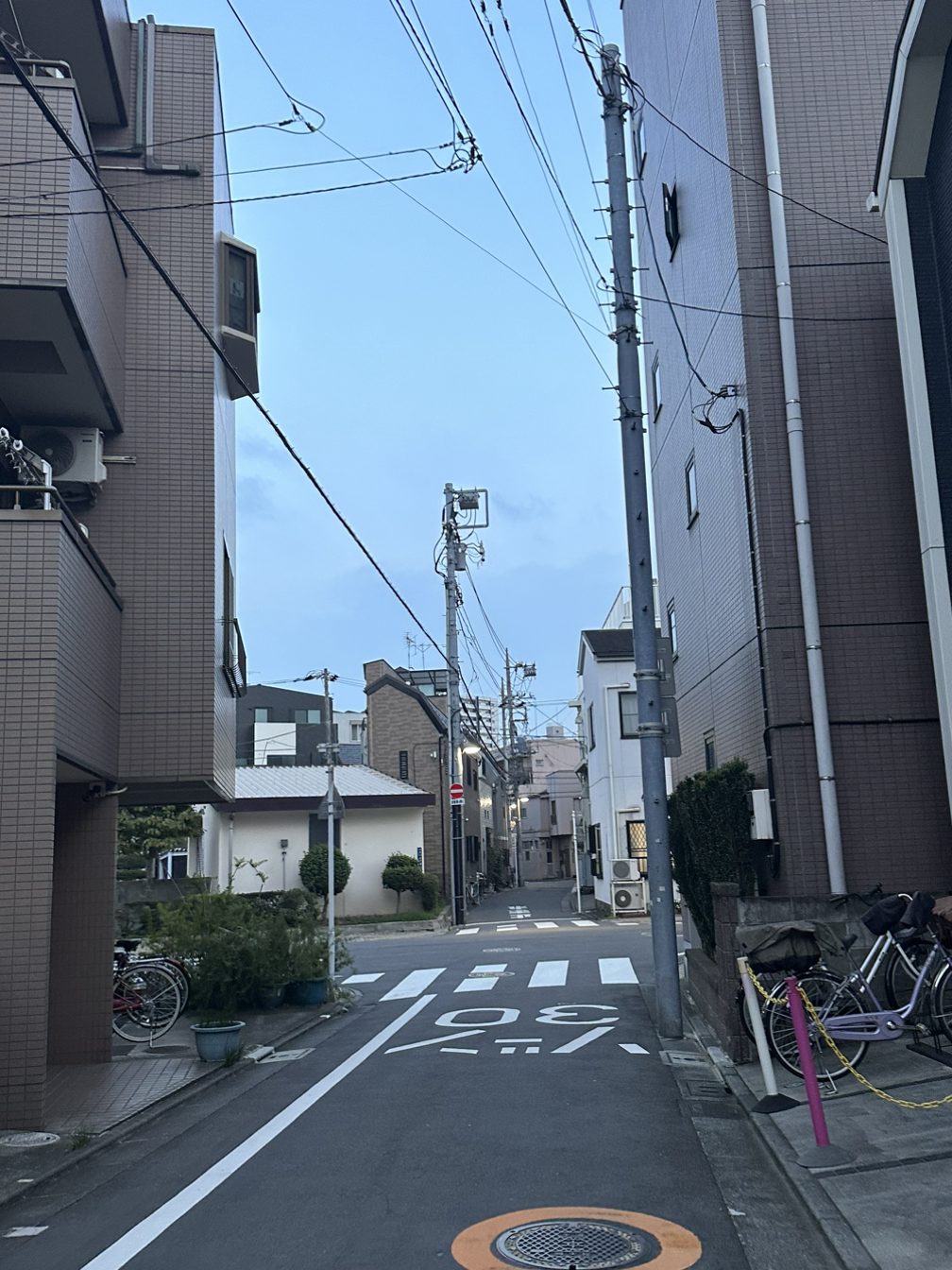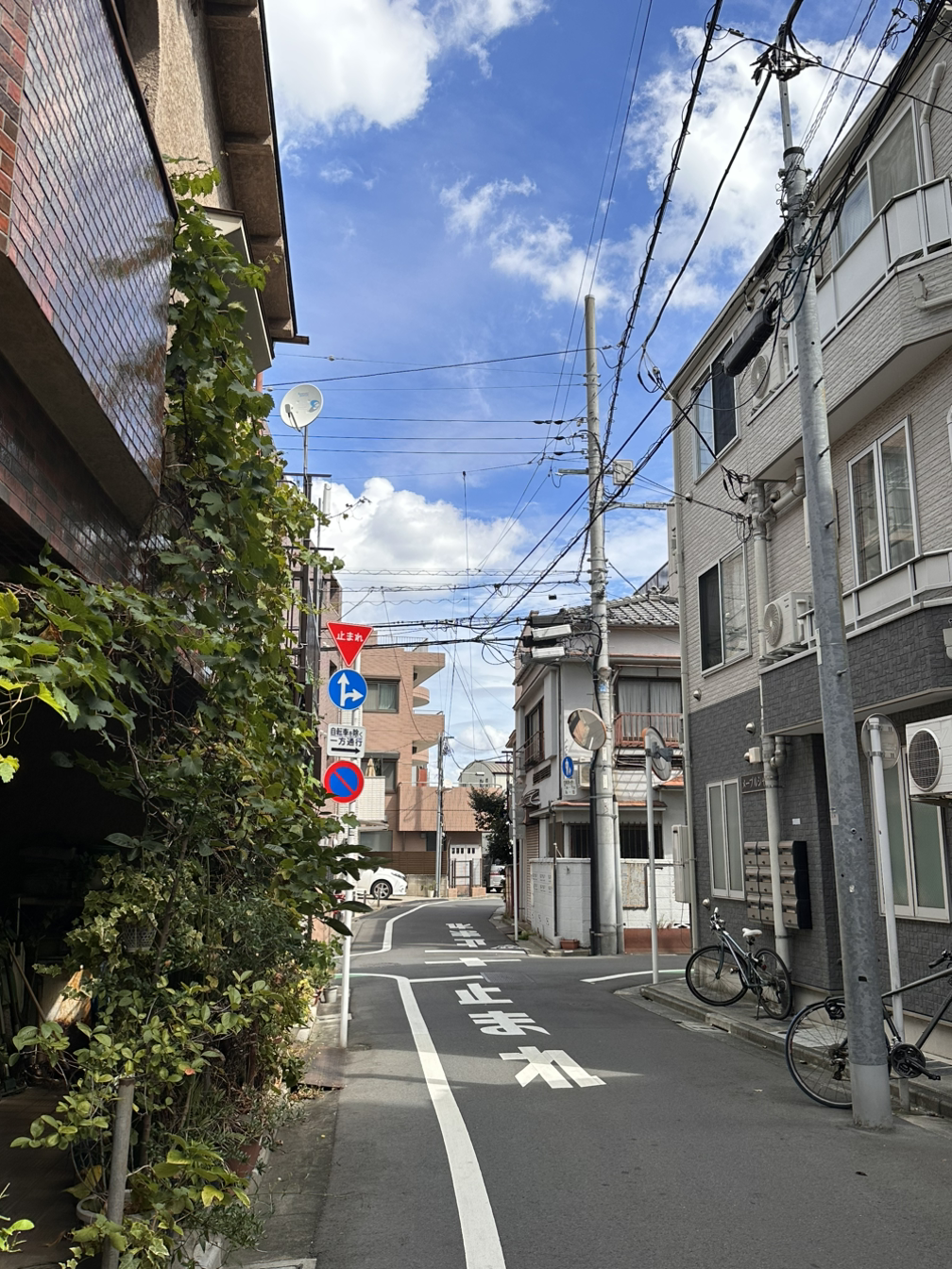 숙소는 근처의 Machiya역에서 1.2km 떨어진 곳, 심지어 구불구불한 골목길 미로 한가운데에 있었다. 수없이 나오는 갈림길을 놓치지 않고 제대로 선택하려면 구글맵에 시선을 고정하고 걸을 수밖에 없었다. 갈림길 하나 지나치고 파란 하늘 아래로 지나가는 자전거와 기지개 켜는 고양이한테 눈길 한번 주고, 다시 갈림길이 나오면 구글맵을 쳐다보며 걷다 보니 어느새 겨우 숙소에 도착했다.