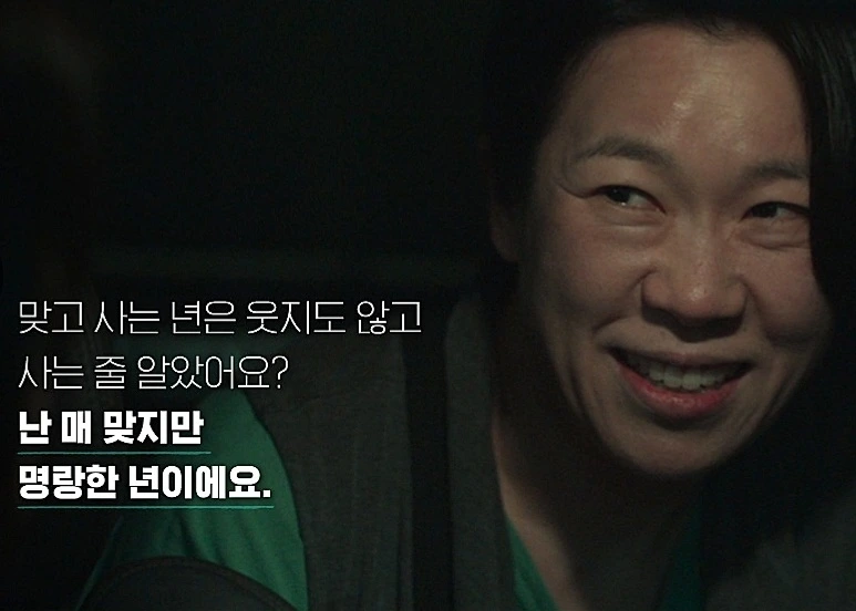 사진출처: 넷플렉스 여주 조력자 강현남은 피해자 캐릭터의 진일보를 보여준다. “난 매는 맞지만 명랑한 년이에요.” 이 현남의 대사를 보자. 이는 수동적이고 힘없는 기존 피해자 캐릭터와의 차이를 확실히 보여준다. 악소리도 못 내고 면상을 난타당할 때조차 때리는 남편의 두 눈을 보며 현남은 분명히 말한다.