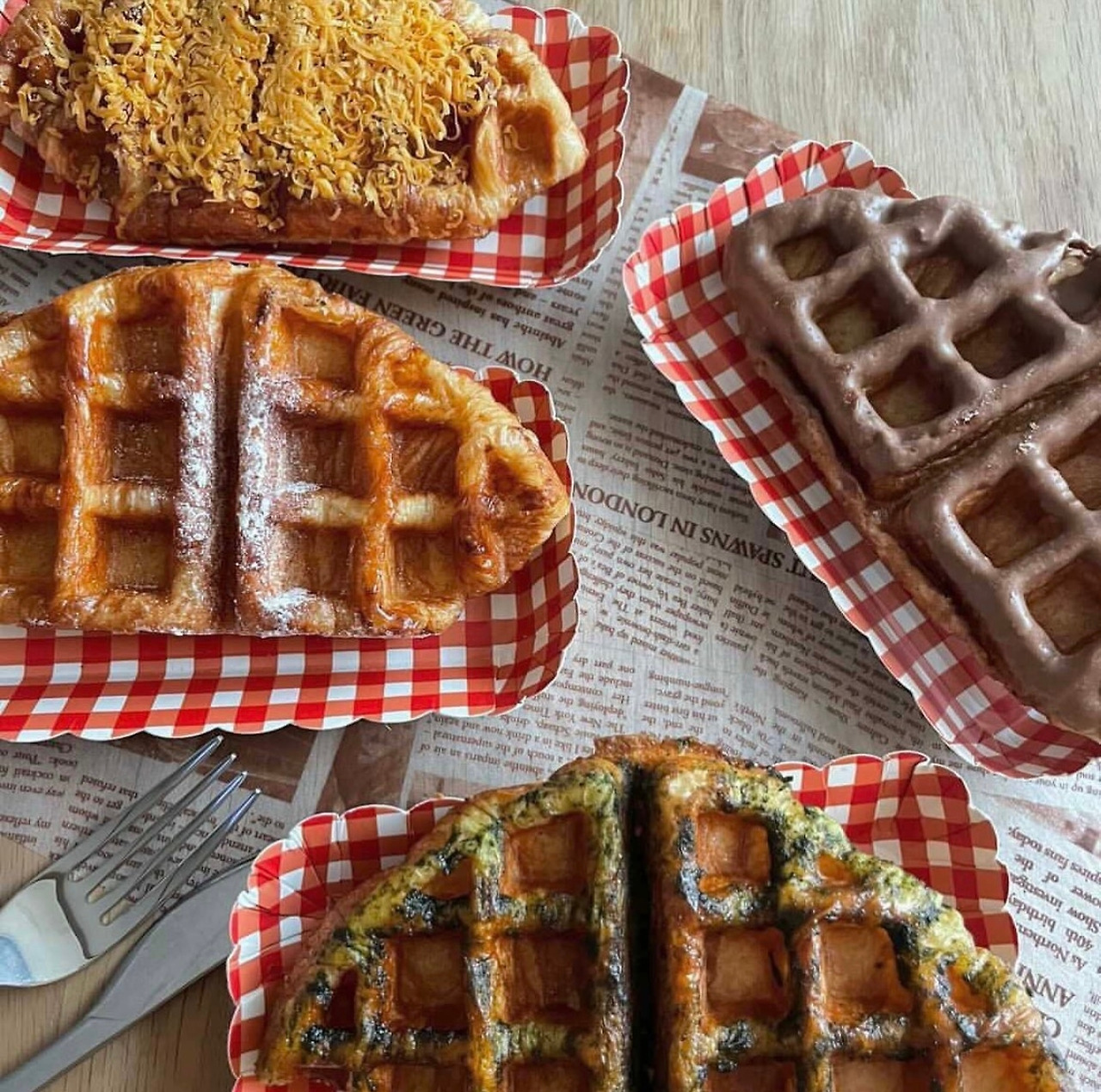 와플기계 특유의 네모모양이 찍여 있는 반달 모양의 와플,인 줄 알았는데 자세히 보니 와플이라고 하기엔 아주 얇은 결들이 겹겹이 쌓여 층을 이루고 있었다. 또 끝은 바삭해 보여 페이스트리 같아 보였다. 아.. 반달.. 크로아상 모양의 와플... 혹시 이게 크로플인가?!! 한동안 유행했던 바로 그것?! 안 먹어봤다니까 어디 아프리카 오지에서 왔냐고 무시당했던.. 아 그 크로플.. 한 번도 안 먹어 본 사람은 있어도 한 번만 먹어본 사람은 없다던 그것!